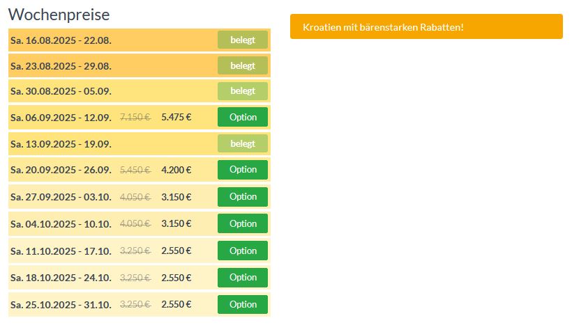 Die aktualisierte Preisliste für 2025 mit den Buchungsoptionen finden sie hier